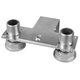 Uchwyty gazomierza/Stelaże G-1,6 do G-6 z łącznikiem izolacyjnym o rozstawie 130 mm Umożliwiają szybki i łatwy montaż gazomierzy naściennych lub szafkowych. Zapewniają: